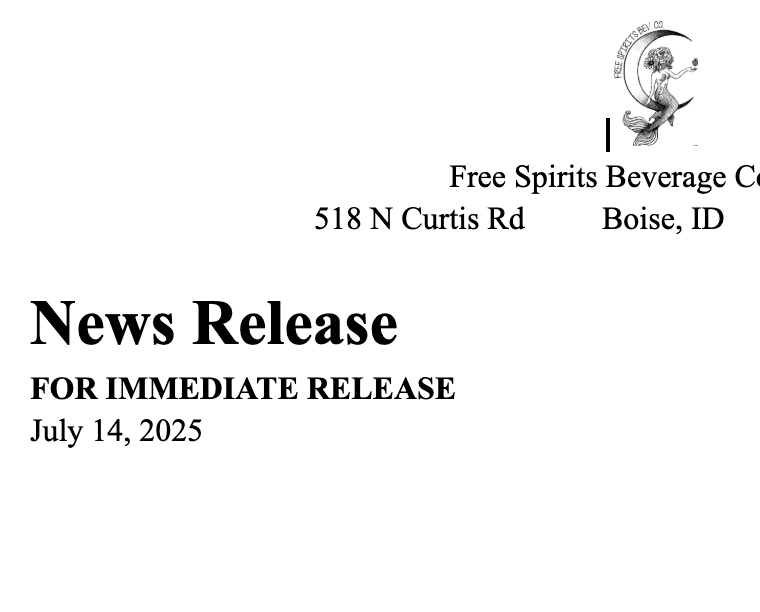 FREE SPIRITS BEVERAGE COMPANY NEWS RELEASE