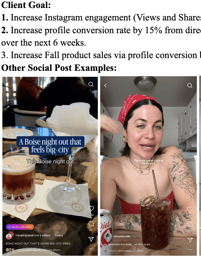 This plan shows my ability to plan and edit social media content to hit key client metrics. It highlights my ability to create engaging content and understand social media platforms. I designed two original social posts for the company, as well as a feature for the company website, to increase engagement and promote new products and events.